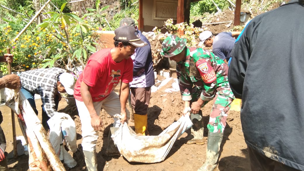 Dilokasi kegiatan Serma I Dewa Kade Ratdana mengatakan Akibat hujan lebat yang sudah mulai turun beberapa hari belakangan ini menyebabkan terjadinya bencana tanah longsor yang menimpa salah satu warga, beruntung tidak sampai menimbulkan korban jiwa. Tuturnya
