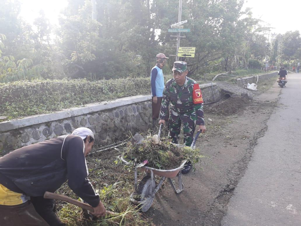 Babinsa Kare Gotong Royong Bersama Warga Bersihkan Lingkungan.