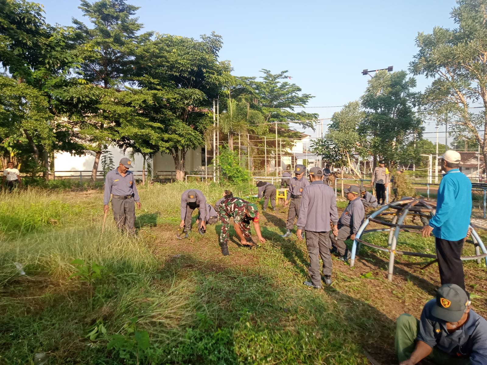 Kerja bakti ini bertujuan untuk menciptakan lingkungan yang bersih, rapi, dan nyaman bagi warga sekitar. Dalam kegiatan tersebut, Babinsa bersama Linmas membersihkan area lapangan dari sampah dan dedaunan kering yang menumpuk, sekaligus merapikan fasilitas umum agar dapat digunakan dengan maksimal oleh masyarakat.