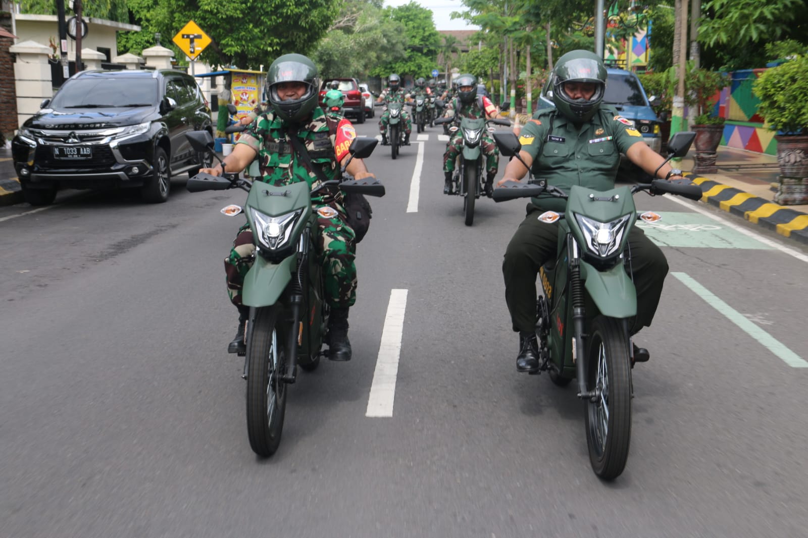 Madiun – Komandan Kodim 0803/Madiun Letkol Inf Meina Helmi mendistribusikan 80 unit sepeda motor trail listrik bantuan Kementerian Pertahanan kepada para babinsa.