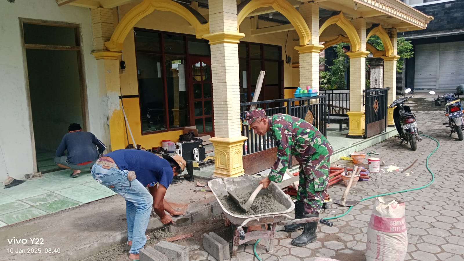 Di wilayah desa binaan tersebut Sertu Basuki membantu warga yang sedang melakukan kegiatan pemasangan keramik Masjid AL Huda di Dusun Kowang. ” Hari ini ada salah satu kegiatan yang kami lakukan di wilayah desa binaan yaitu karya bakti pemasangan keramik di emperan atau teras Masjid Al Huda Dusun Kowang, ” ungkapnya.