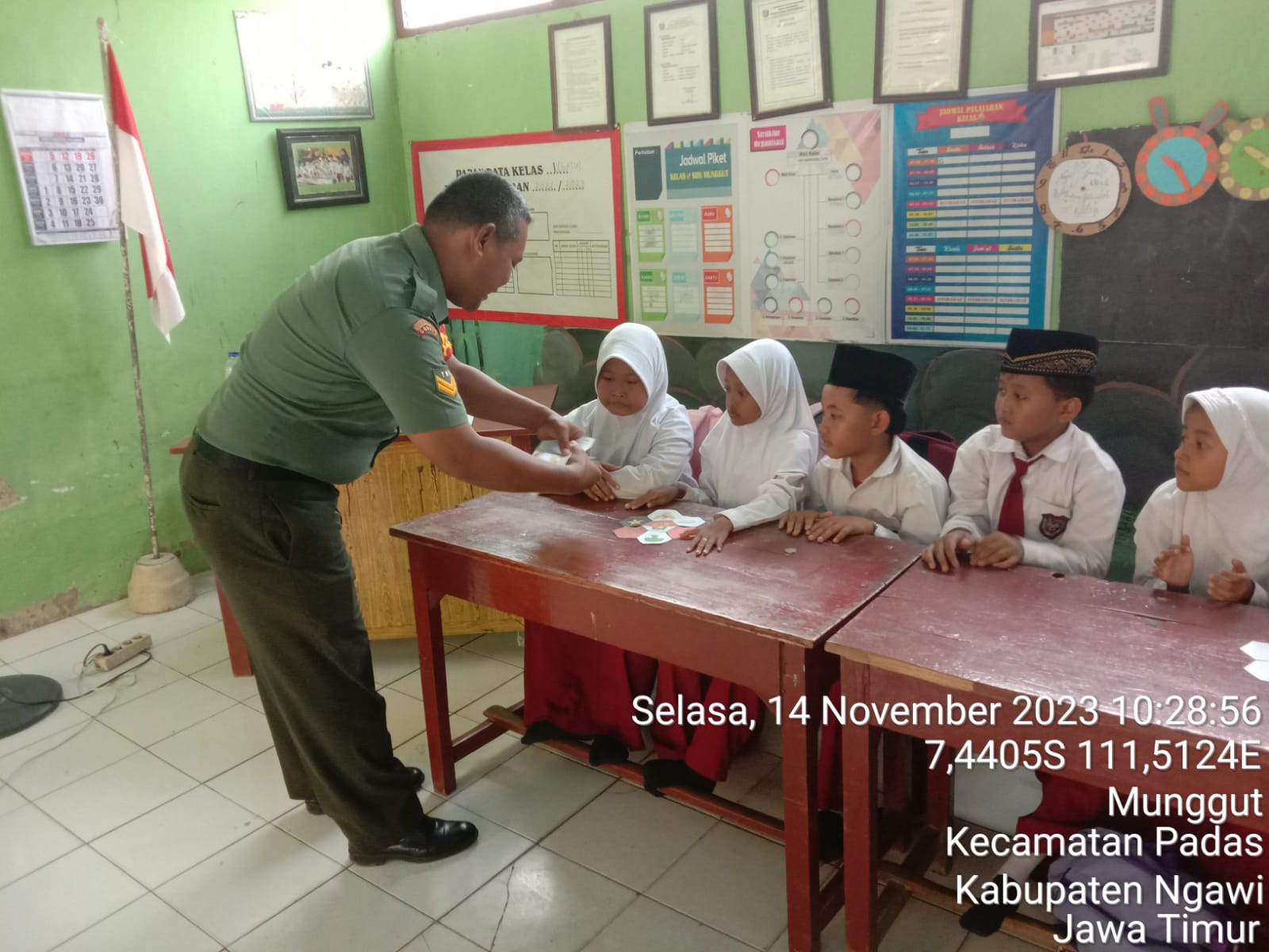 Kegiatan pemberian materi Wasbang Babinsa Koramil -04 Padas di SDN 2 Munggut kecamatan Padas, kabupaten Ngawi.