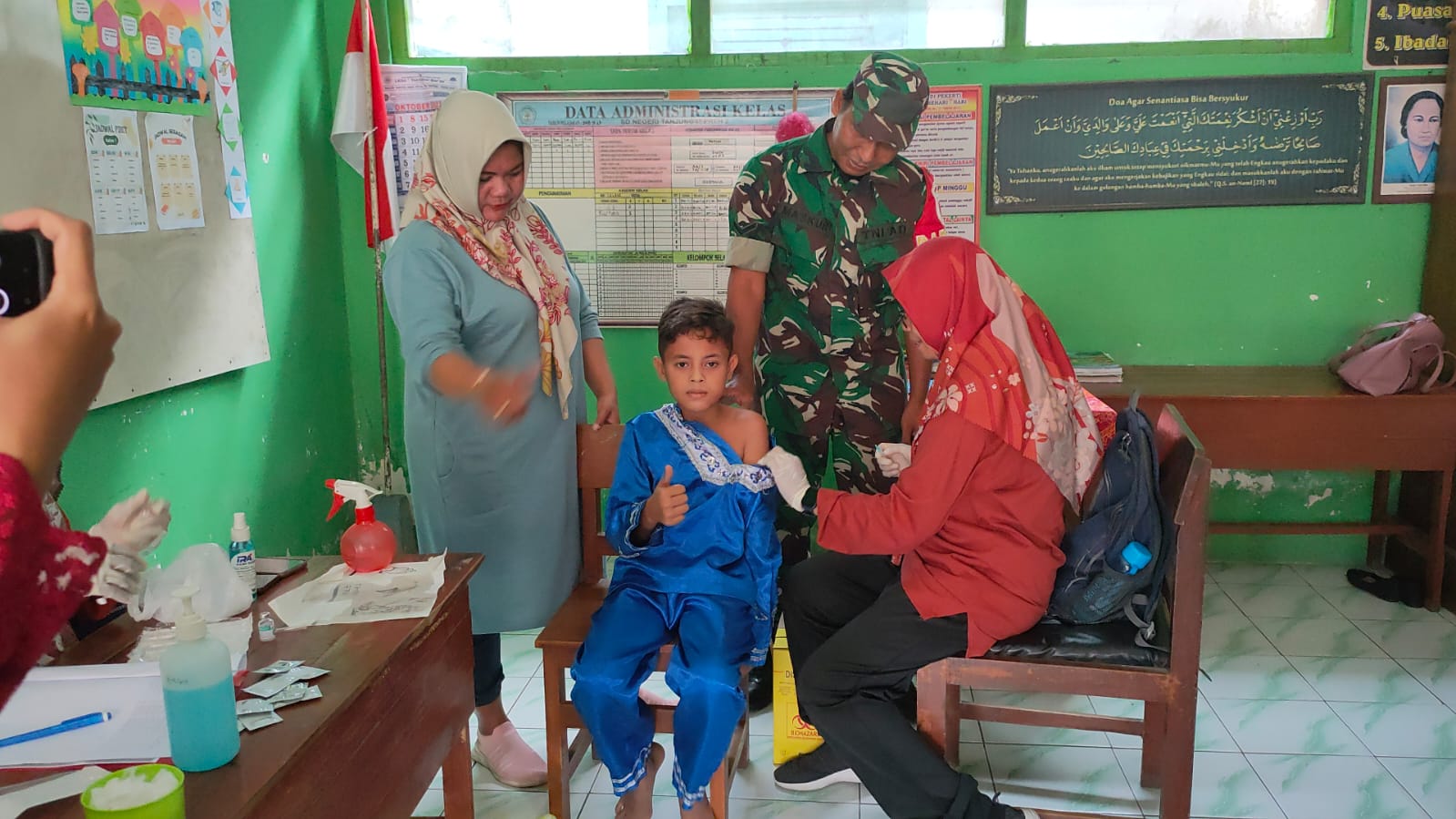 Babinsa Koramil 0804/06 Maospati Dampingi Pelaksanaan Bulan Imunisasi Anak Sekolah