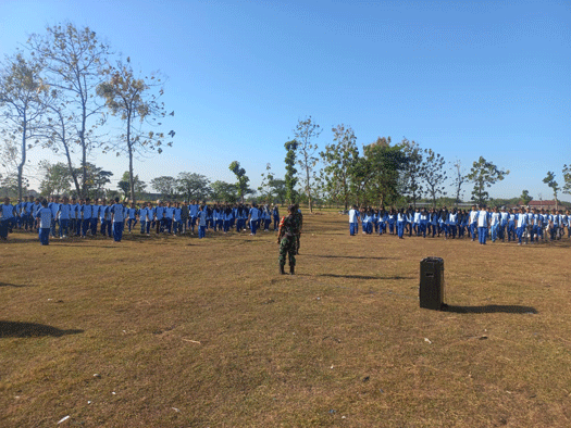 Magetan.buserjatim.com – Anggota Babinsa Koramil Tipe B 0804/08 Barat jajaran Kodim 0804/Magetan Serka Dhidik menghadiri Kegiatan MPLS di SMKN Kartoharjo dengan materi PBB (Peraturan Baris Berbaris), bertempat di Lapangan Desa Gunungan Kec. Kartoharjo. Kamis(20/07/2023)