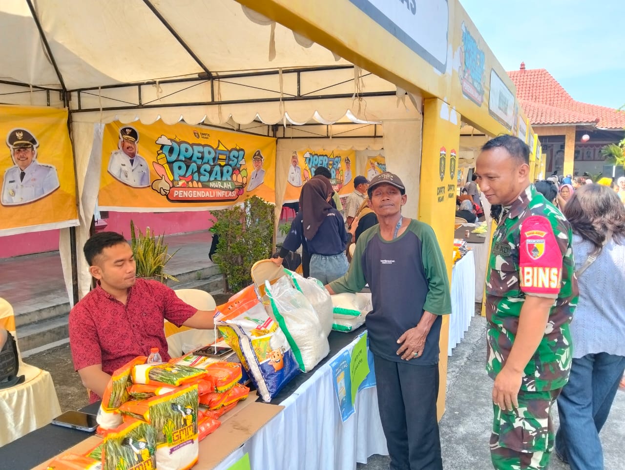 Keberadaan Babinsa Sertu Marsudi selain mendampingi dan monitoring kegiatan pasar murah juga menjaga ketertiban masyarakat saat menunggu antrian untuk membeli sembako di lokasi.