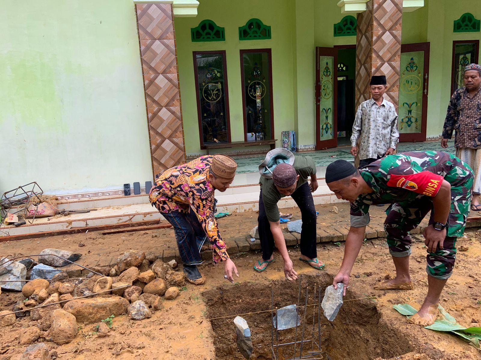 Peletakan batu pertama ini diawali dengan bacaan Basmallah dan Doa yang dilaksanakan oleh pengasuh Ponpes Nurul Iman KH. Zahri Wardi dengan didampingi oleh Babinsa dan Kepala Desa Masaran.