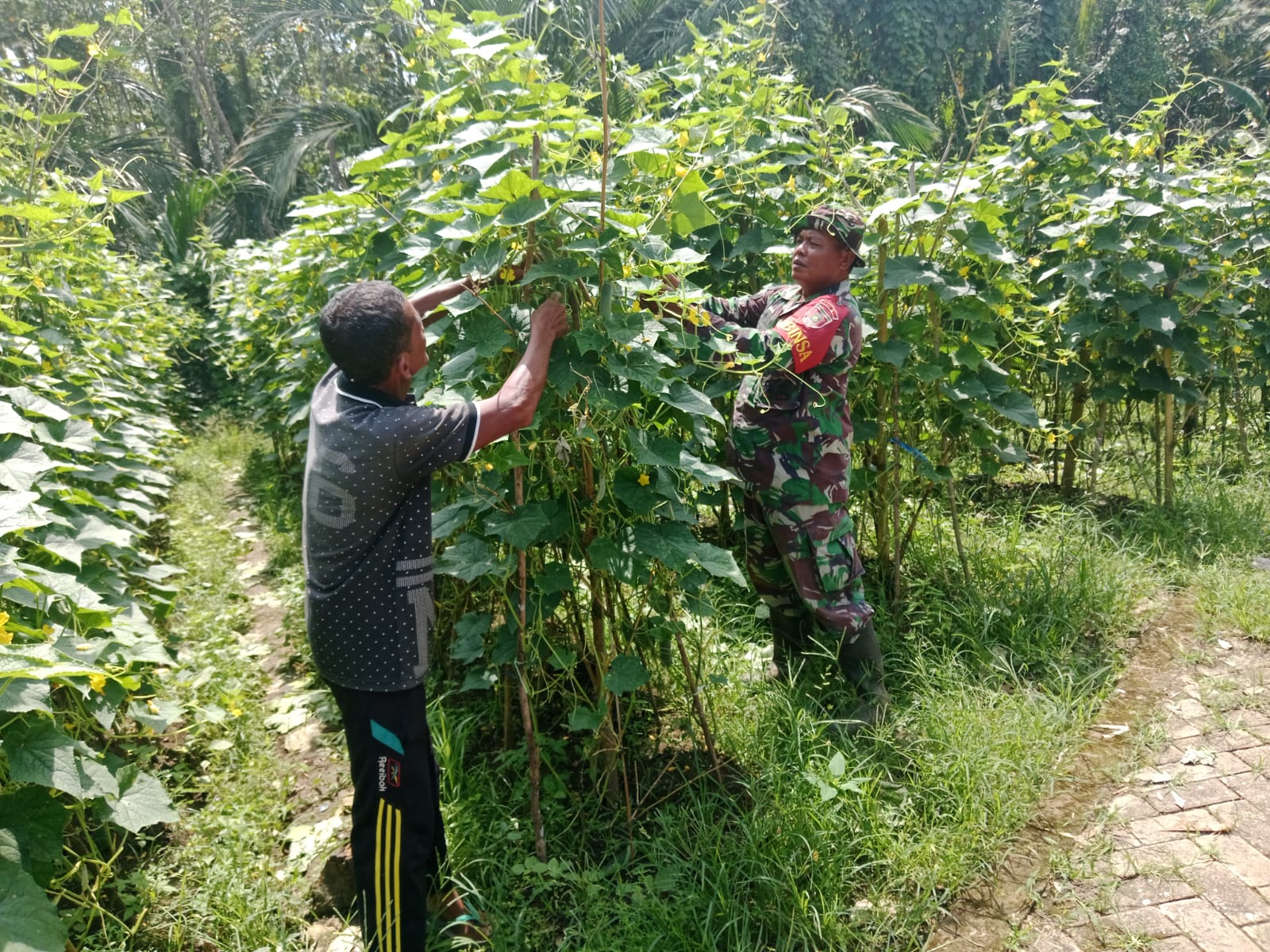 HARUYAN, BUSERJATIM.COM- – Babinsa Koramil 1002-03/Haruyan, Sertu Sutoyo, menunjukkan kepeduliannya terhadap petani dengan membantu memanen buah mentimun di kebun milik Bapak Sarman di Desa Hapulang, Kecamatan Haruyan, Kabupaten Hulu Sungai Tengah, pada Senin (3/3/2025).