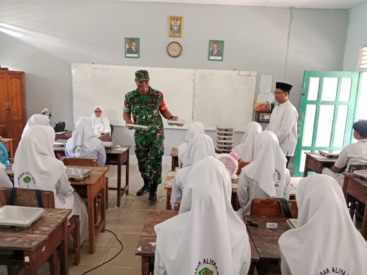 BARABAI, BUSERJATIM.COM GROUP – Babinsa Koramil 1002-06/Barabai melaksanakan pendampingan dalam kegiatan Pemberian Makan Bergizi (MBG) yang berlangsung di sejumlah sekolah dan fasilitas pelayanan masyarakat di wilayah Kecamatan Barabai, Kabupaten Hulu Sungai Tengah (HST), Jumat (25/7/2025).