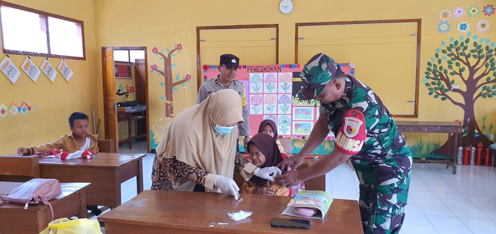 Anggota Koramil 06/Gemarang, Kodim 0803/Madiun tersebut turut mendampingi pelaksanaan imunisasi di SDN 1 dan SDN 2 Sebayi. Kegiatan BIAS oleh petugas Puskesmas tersebut juga dipantau langsung kepala sekolah bersama sejumlah guru.
