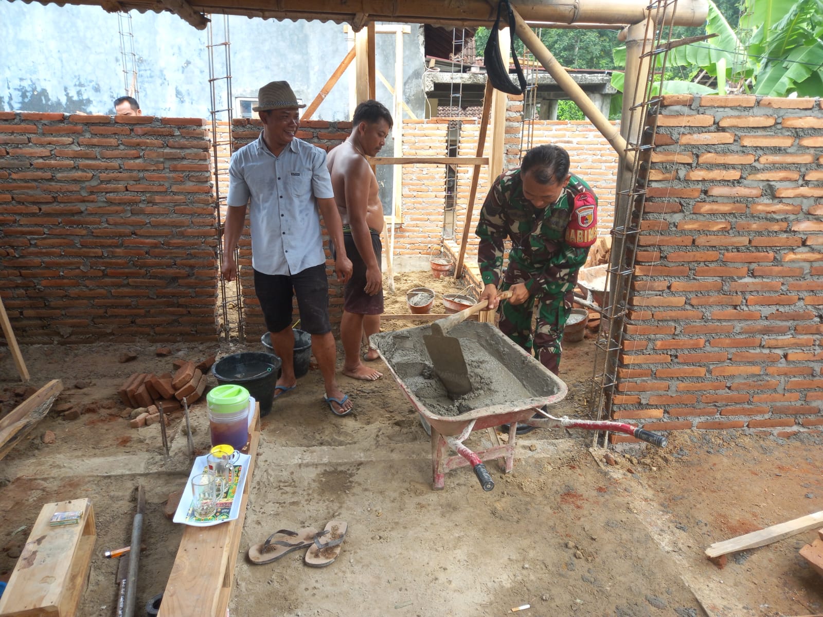 Ngawi – Anggota Koramil Mantingan Kodim 0805/Ngawi Serma Siswanto membantu masyarakat melaksanakan pembangunan salah satu rumah warga masyarakat di Desa Tambakboyo Kecamatan Mantingan, Kamis (14/11/2024).