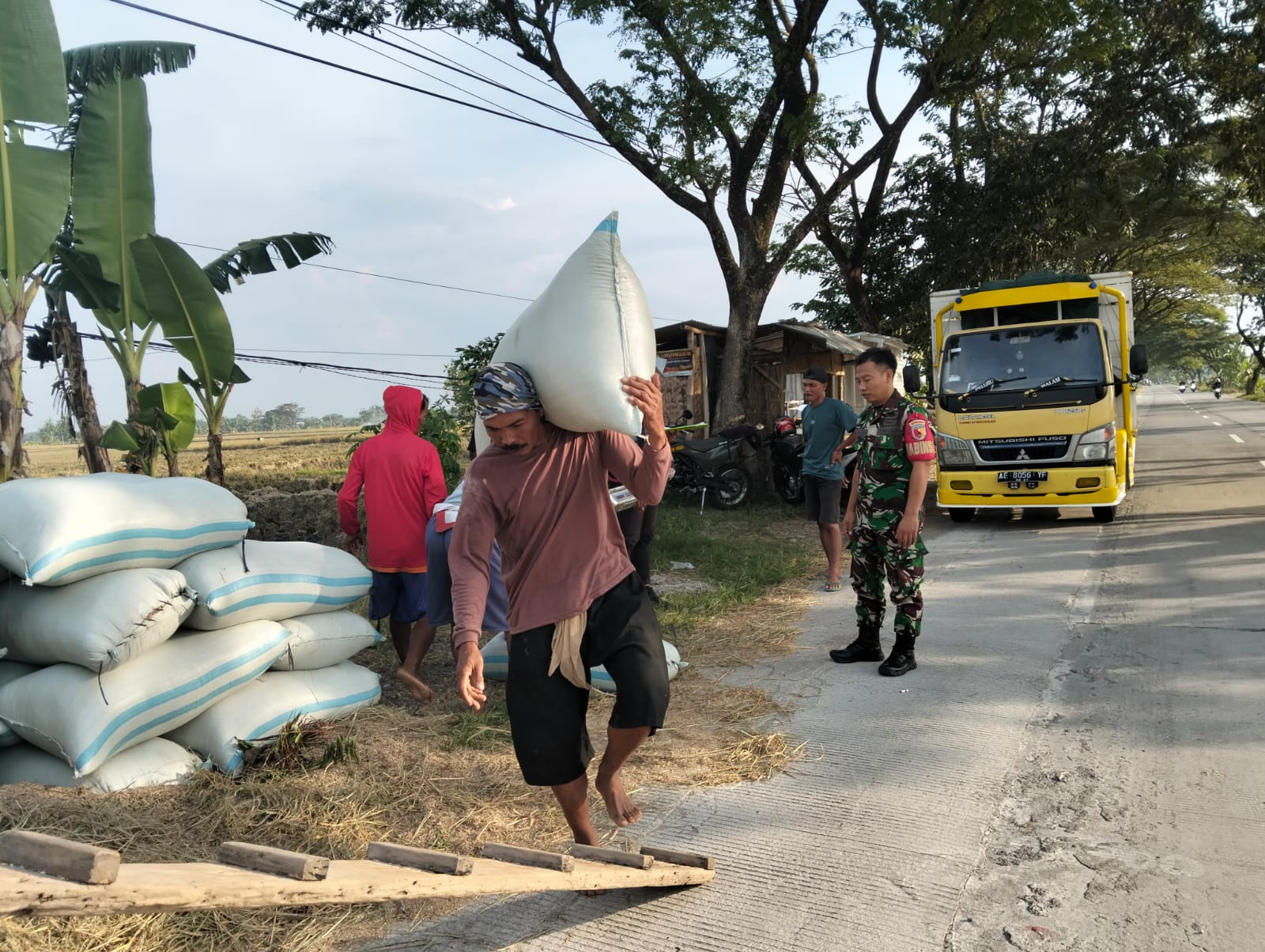 Kegiatan ini berlangsung intensif sejak sepekan terakhir dengan menyisir sejumlah desa di Kecamatan Paron, Kabupaten Ngawi. Serka Sugiono turut terlibat dalam setiap tahapan proses, mulai dari pengecekan kualitas gabah, pendataan, hingga pengangkutan hasil panen ke gudang Bulog.