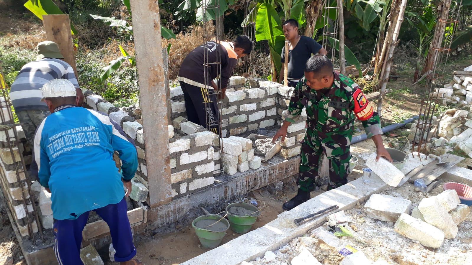 PAMEKASAN,BUSERJATIM.COM – Membangun kebersamaan TNI dengan Rakyat, anggota Posramil 0826-12 Kadur gotong-royong membangun Musholla milik Ustat Jauhari (54) di Dusun Ba’batoh, Desa Kertagenah Tengah, Kecamatan Kadur, Selasa ( 24/01/2023).