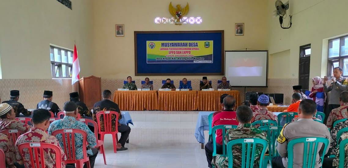 Musyawarah desa tersebut dihadiri oleh Plt. Camat Parang ( Agung Budiarto, So. S), Babinsa Koramil Parang (Serma Suhardi), Wakapolsek Parang (Ipda Slamet Wahyudi), Kades Krajan (Mujiono), Ketua BPD, Perangkat Desa dan para undangan serta perwakilan dari warga.