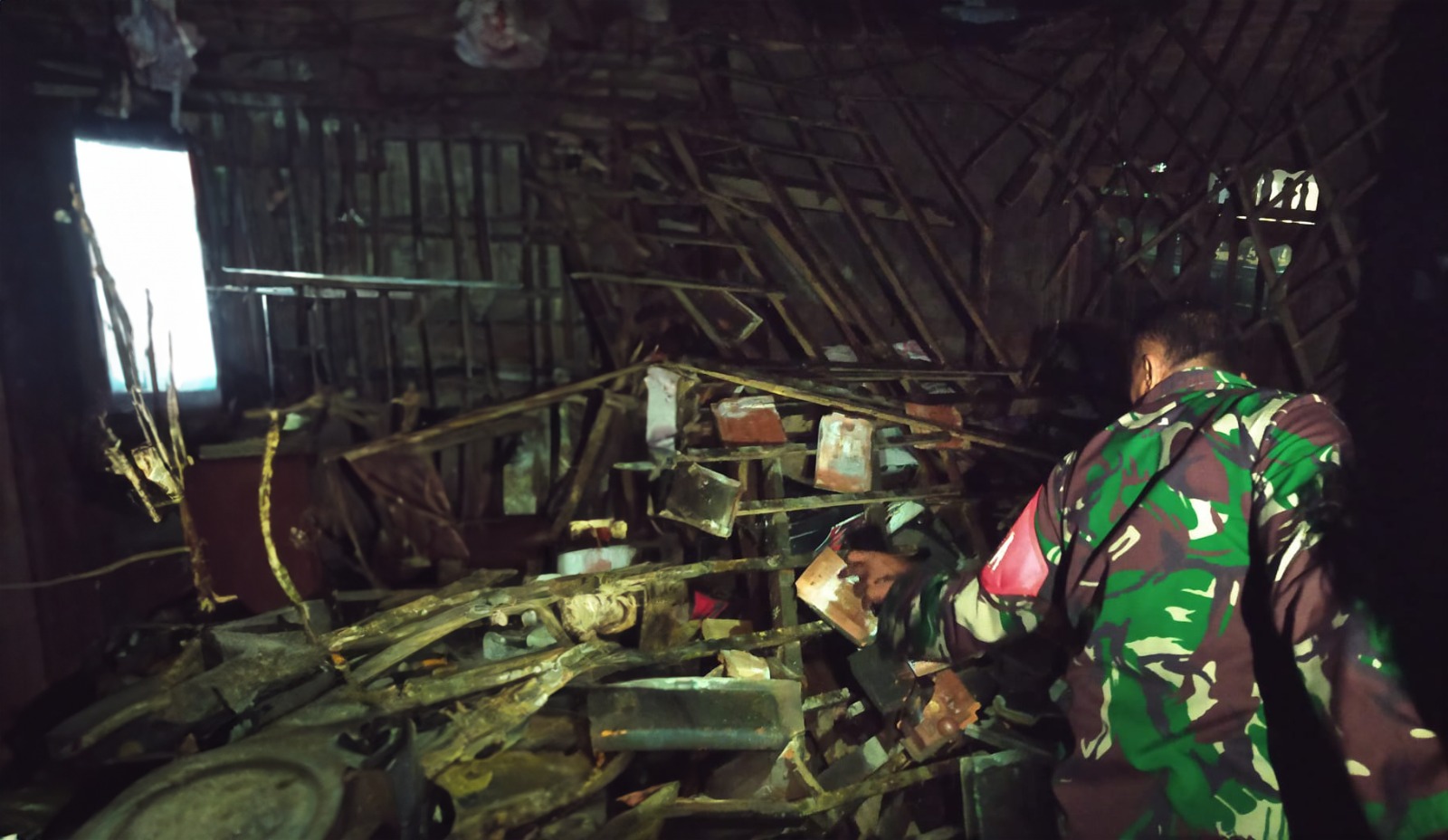Atap rumah Bapak Ahmad Nurrohman yang mengalami roboh menjadi sorotan utama. Reruntuhan atap itu juga menimpa dua unit sepeda motor, yakni Supra dan Beat, yang parkir di dekatnya. Tim tanggap bencana yang hadir di lokasi langsung memberikan bantuan evakuasi dan membersihkan puing-puing reruntuhan dengan sigap. Selain itu, mereka juga memberikan bantuan psikologis bagi warga yang masih terpukul akibat guncangan emosional yang mereka alami.