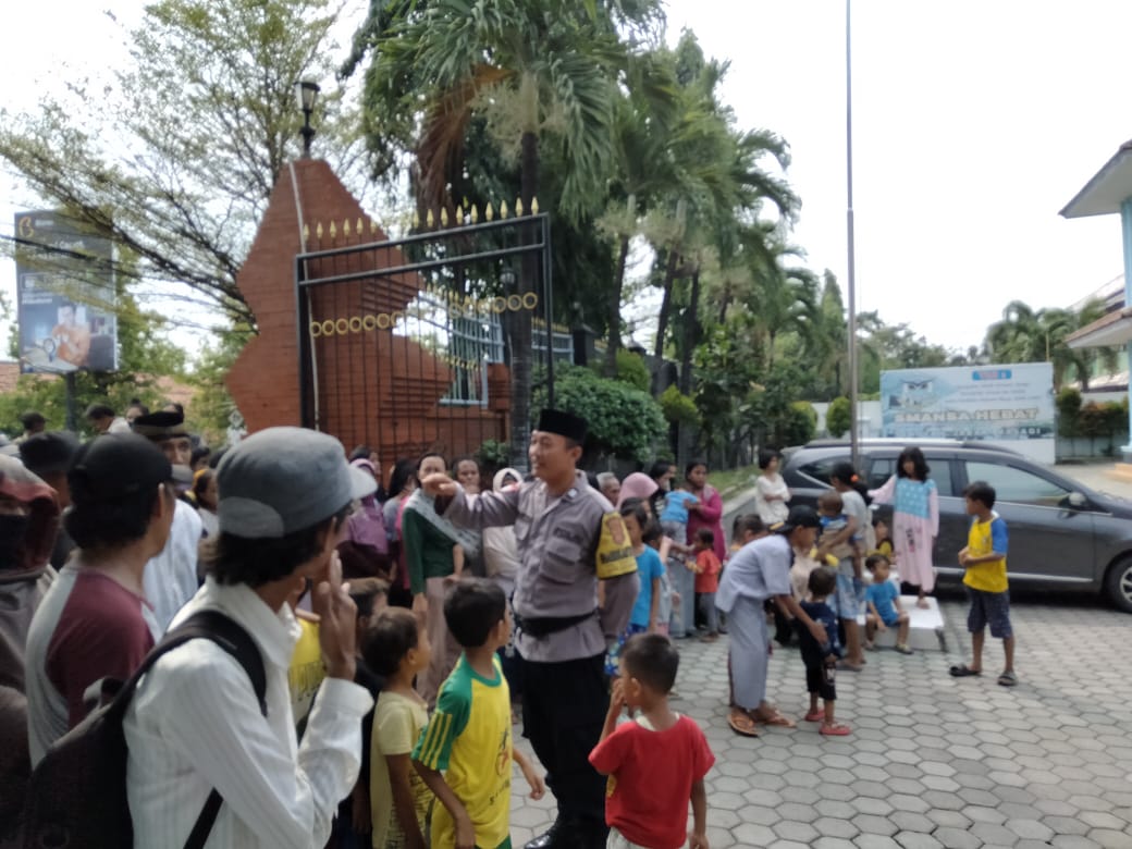 Bhabinkamtibmas kelurahan Sukapura Aiptu Waryo hadiri kegiatan indahnya berbagi IIKASMANSA, dalam rangka membagikan nasi kotak kepada dhuafa , Sabtu (01/06/2024).