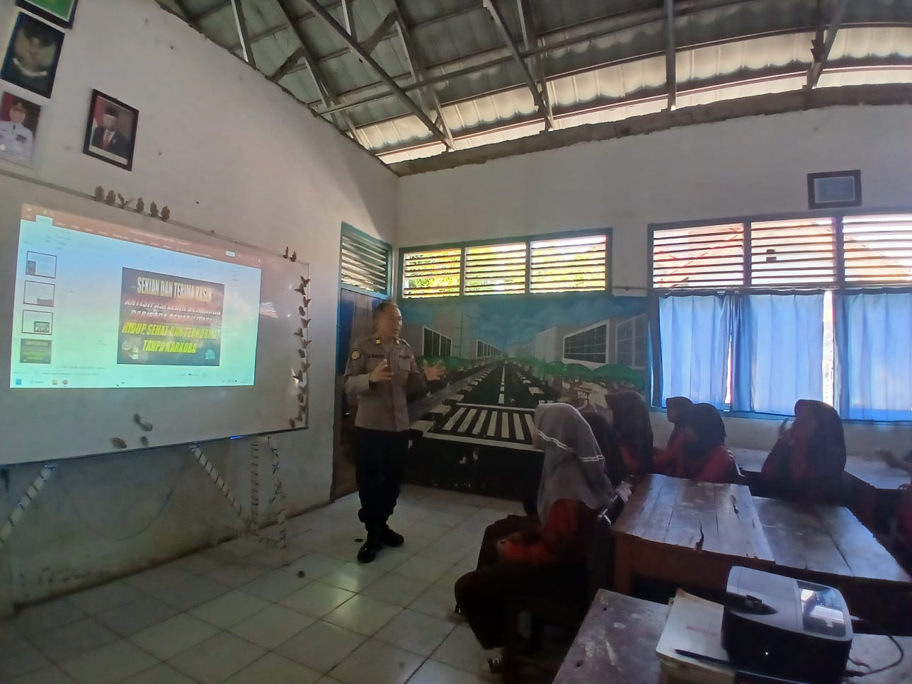 Dihadapan para siswa/i, menerangkan bahayanya penyalahgunaan narkoba dan penjelasan mengenai cara menghindarinya.