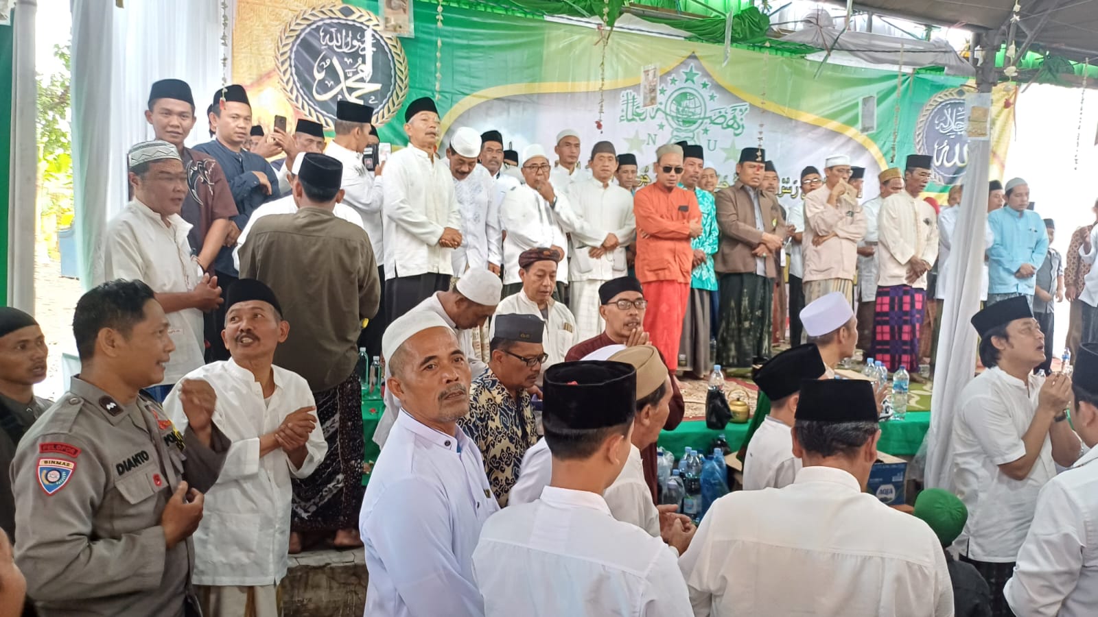 POLRES CIREBON KOTA,-Bhabinkamtibmas kelurahan Kecapi Polsek Seltim Polres Cirebon Kota Aipda Dianto menghadiri peringatan maulid nabi Muhammad SAW 1446 H, di RW 02 dukuh semar kelurahan kecapi kecamatan Harjamukti Cirebon kota, dengan menyampaikan pesan Kamtibmas upaya menciptakan cooling system Pilkada serentak, Jumat (04/10/2024).