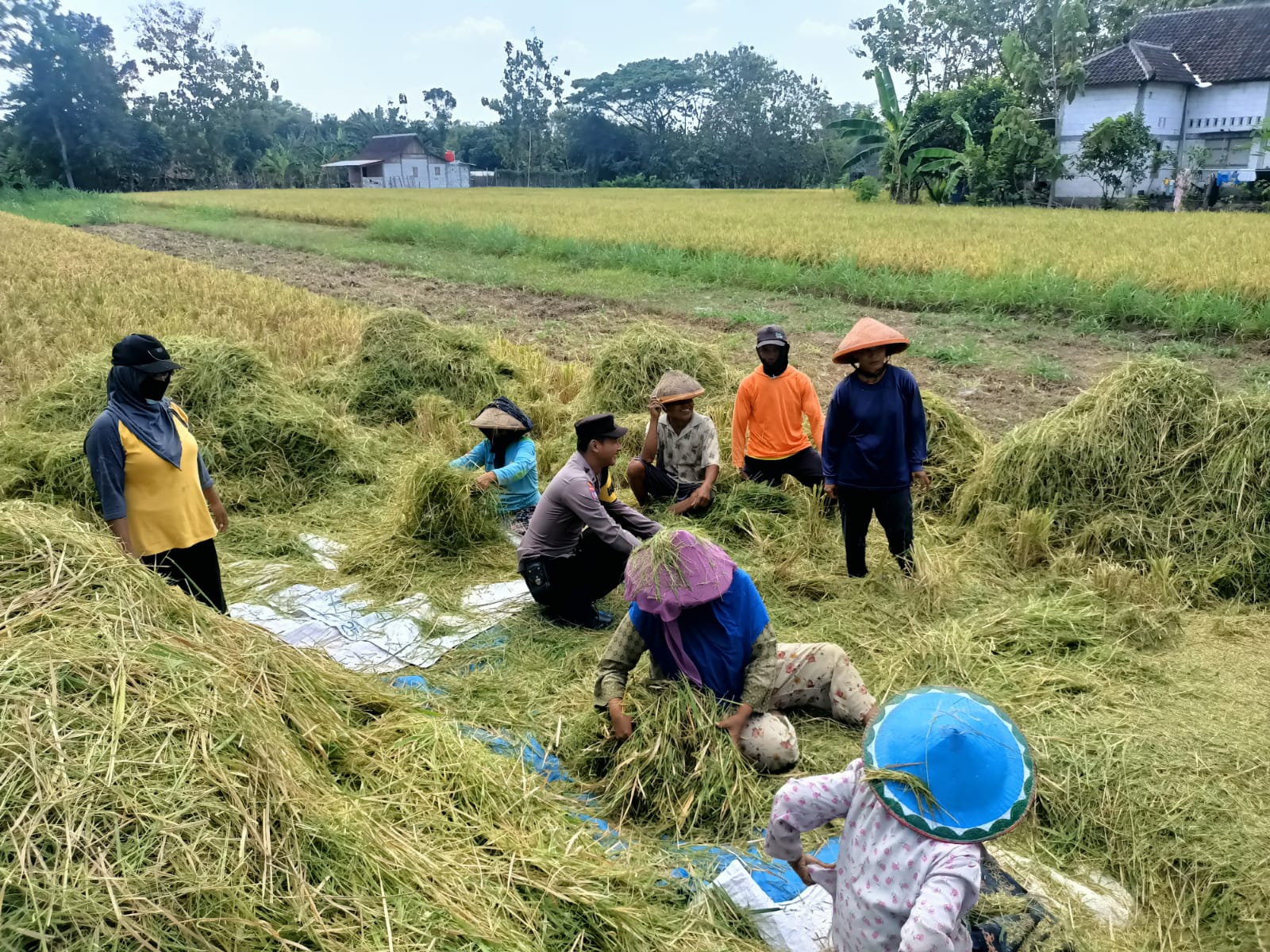 Anggota kepolisian yang ramah dan berpengalaman berkunjung ke beberapa desa di sekitar area pesawahan, sebagaimana diutarakan oleh Kapolsek Geneng AKP Dandung S