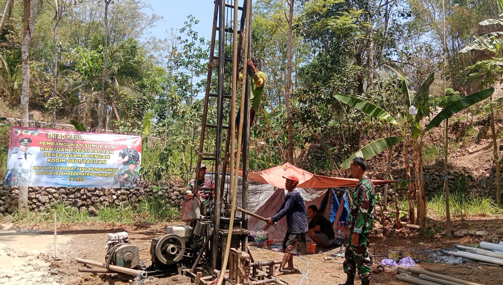 “Secara keseluruhan di Pacitan kita membangun tiga sumur bor yakni di Dusun Nangka, Desa Sukodon dan Dusun Gunungsari, Desa Belah, keduanya sudah jadi. Satu lagi yang juga di Kecamatan Donorojo masih tahap pengerjaan, tepatnya di Dusun Jaten, Desa Donorojo,” kata Danrem dalam keterangan tertulisnya, Selasa (21/11/2023).