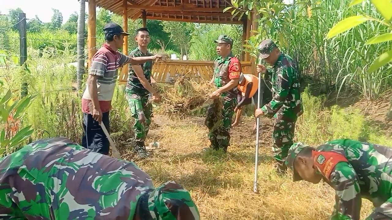 Kehadiran Babinsa Koramil Type B 0804/09 Sukomoro di tengah warganya menjadikan semangat tersendiri bagi warga masyarakat Desa dalam kegiatan bergotong royong dalam pembersihan embung lembah katresnan.