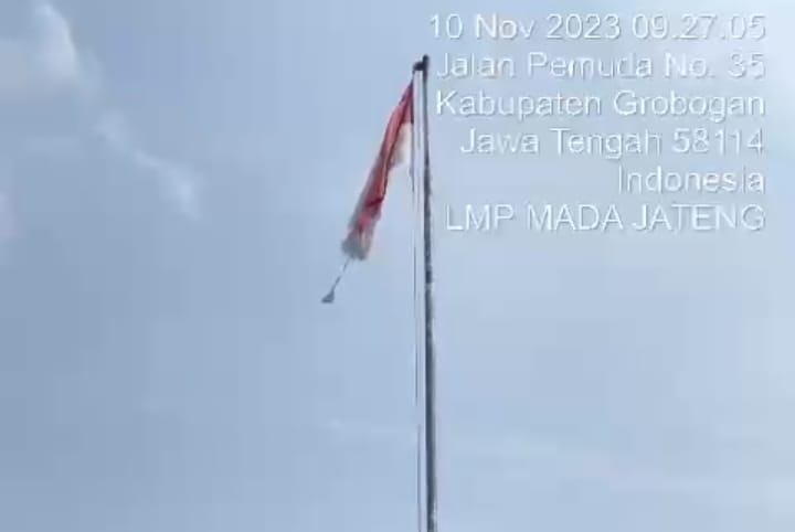 Bendera Sang Saka Merah Putih Sobek Berkibar di kantor Dinas Pendidikan Kabupaten Grobogan Provinsi Jawa Tengah,Tepat Hari pahlawan.