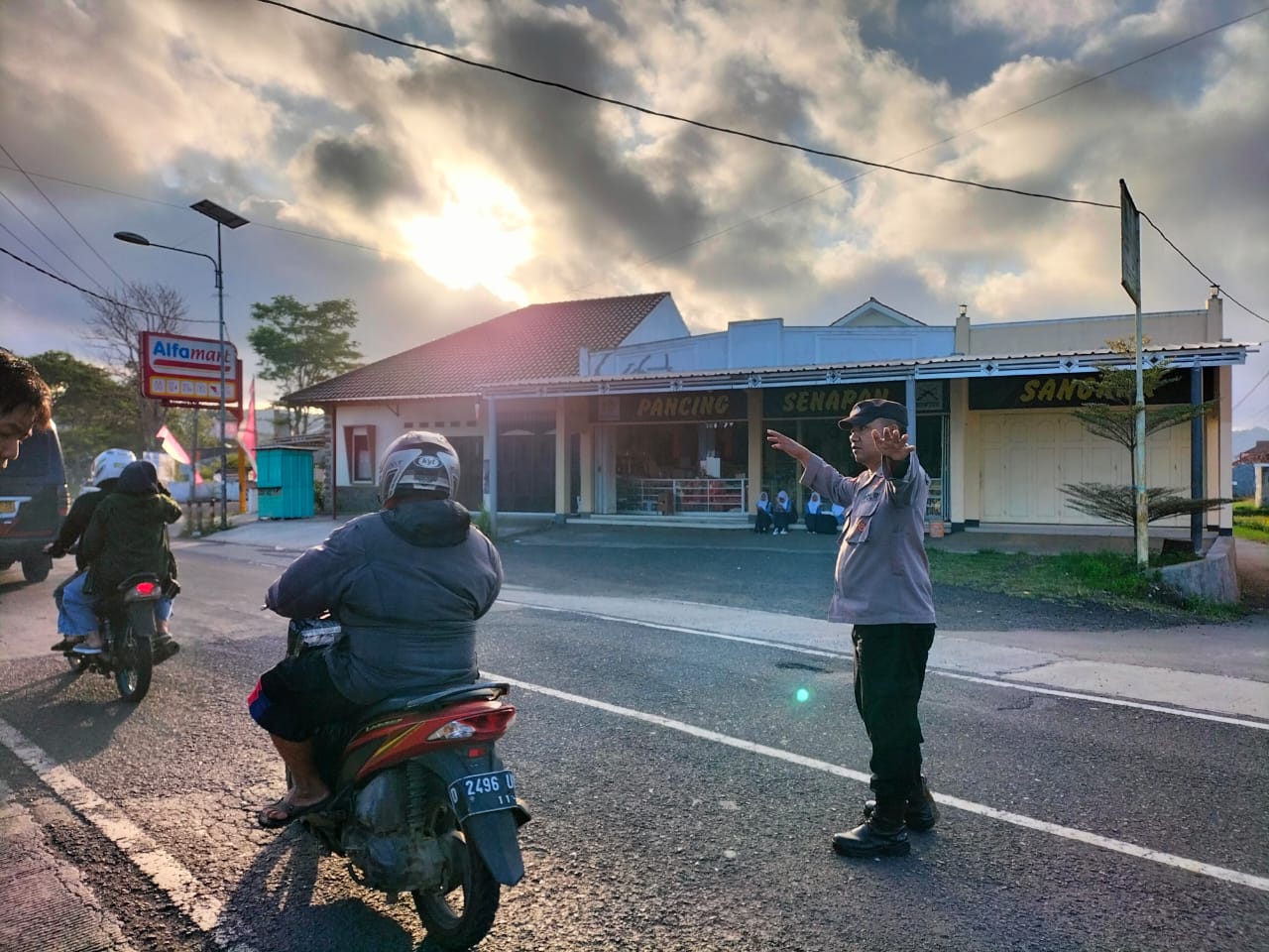 Majalengka – Setiap pagi hari Personil Polsek Cikijing Polres Majalengka Polda Jabar selalu hadir di tengah-tengah masyarakat yang membutuhkan pelayanan masyarakat terutama pengguna jalan, Ps. Panit Samapta l Aipda Eman Subagja melaksanakan kegiatan pengaturan arus lalu lintas di depan SMK PUI Cikijing, Selasa (29/08/2023).