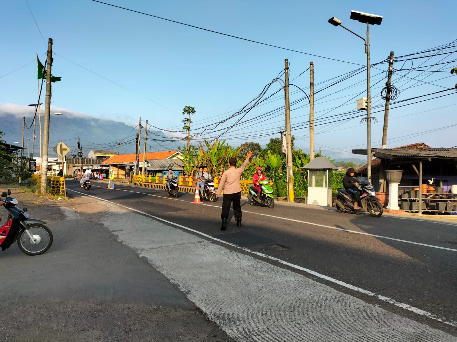 “Kegiatan tersebut dilaksanakan guna membantu masyarakat yang akan beraktifitas baik yang akan masuk kerja, ke kantor maupun ke sekolah dengan maksud perjalanan berjalan aman dan lancar,” Ungkap Aipda Eman.