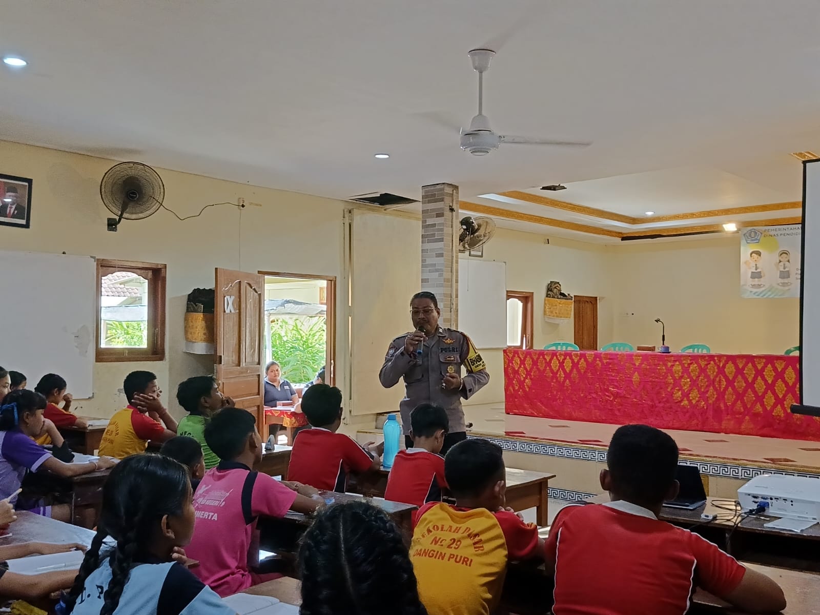 Dalam rangka Masa Pengenalan Lingkungan Sekolah (MPLS), Bhabinkamtibmas Desa Dangri Kelod Aiptu Suwandono, hadir memberikan ceramah penyuluhan mengenai tertib bermedia sosial, kenakalan remaja dan bahaya Bullying di Aula SMP PGRI 6 Denpasar, Jln. Kapten Japa, Gg. Taman Sari No. 2, Banjar Taman Yangbatu, Desa Dangri Kelod, Denpasar Timur, Kamis (18/07/2024) pukul 10.15 Wita.