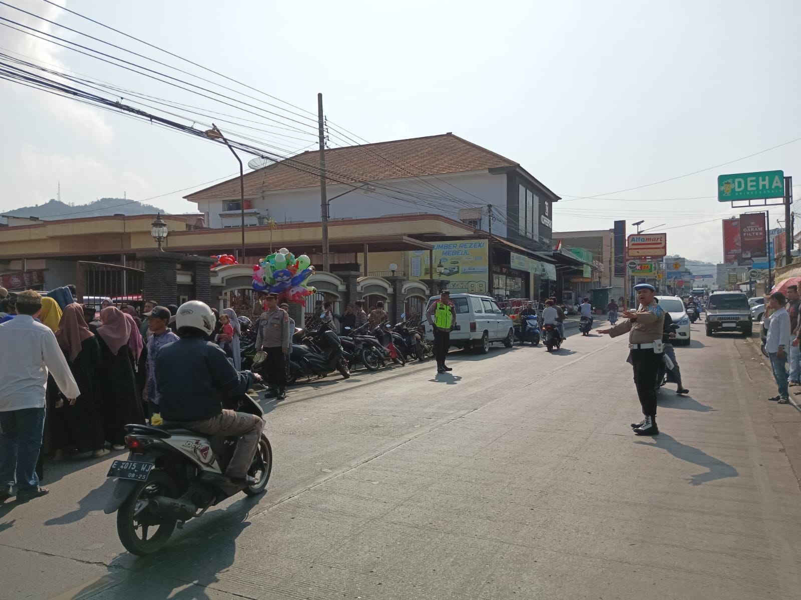 Majalengka – Dalam rangka memberikan rasa aman dan nyaman serta menjaga situasi aman dan kondusif dalam pemberangkatan jama’ah umroh KBIHU NURUL IMAN CIKIJING Kecamatan Cikijing, Sesuai arahan dari Kapolres Majalengka Polda Jabar AKBP Indra Novianto,S.I.K.,M.Si., CPHR.,melalui Kapolsek Cikijing AKP Rudy Djunardi M, S.H., M.H. bersama anggota melaksanakan pengamanan dan pengaturan lalu lintas di Depan Masjid Al-Akbar Desa Cikijing, Kecamatan Cikijing, Kabupaten Majalengka, Rabu (04/10/2023).