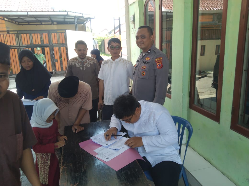 Bhabinkamtibmas desa Sutawinangun Aipda Mahendra monitoring kegiatan santunan bagi anak yatim piatu dan dhuafa oleh DKM Al Istiqomah dalam rangka Ramadan 1445 H, Selasa (09/04/2024).