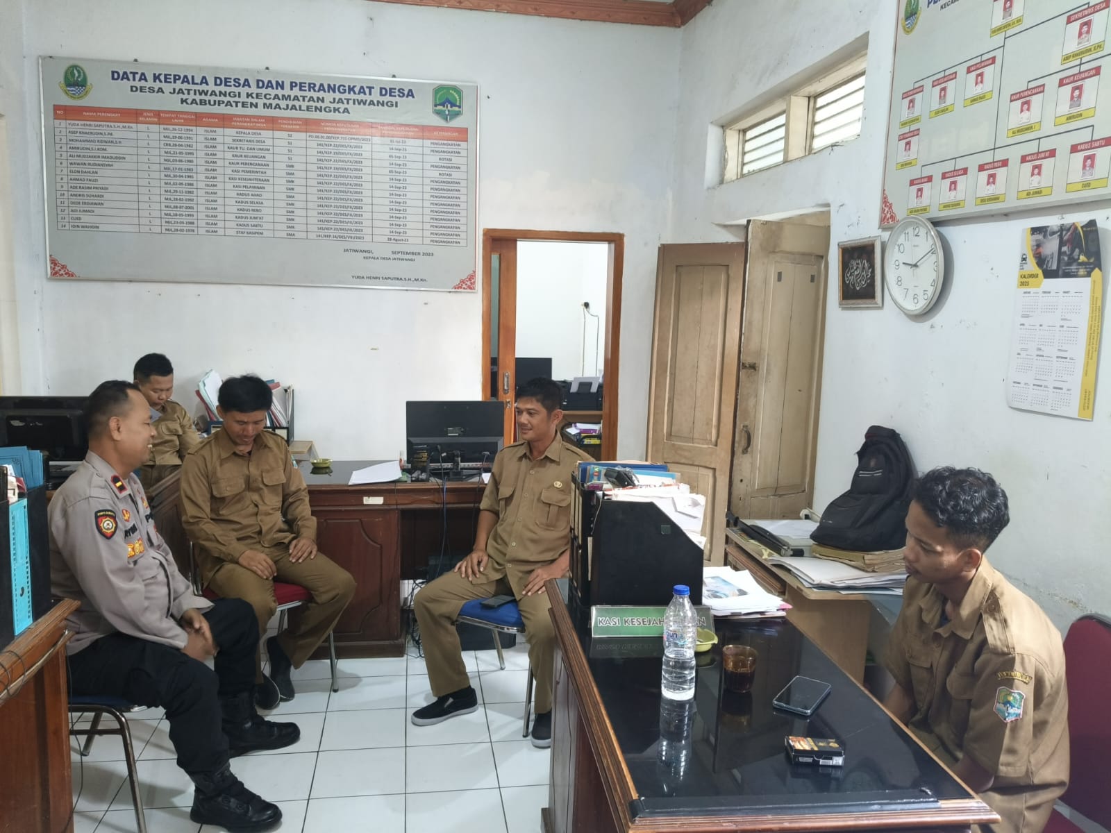 Panit Samapta Polsek Jatiwangi Polres Majalengka melaksanakan Patroli siang dengan menyambangi perangkat Desa sekalian Silaturahmi tatap muka dengan perangkat Desa Jatiwangi Kecamatan Jatiwangi Kabupaten Majalengka.