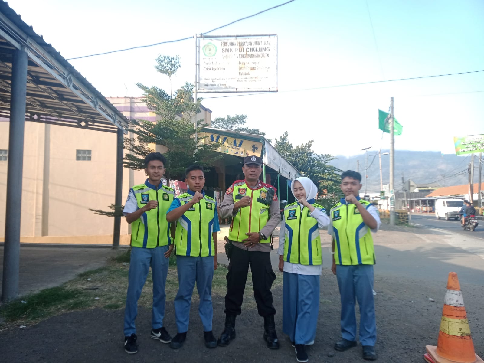 Majalengka – Setiap pagi hari Personil Polsek Cikijing Polres Majalengka Polda Jabar selalu hadir di tengah-tengah masyarakat yang membutuhkan pelayanan masyarakat terutama pengguna jalan, Ps. Panit Samapta III Aiptu Agus Sri Wandono, S.H. melaksanakan kegiatan pengaturan arus lalu lintas di depan SMK PUI Cikijing tepatnya di jalan Cikijing-Ciamis, Rabu (04/10/2023).