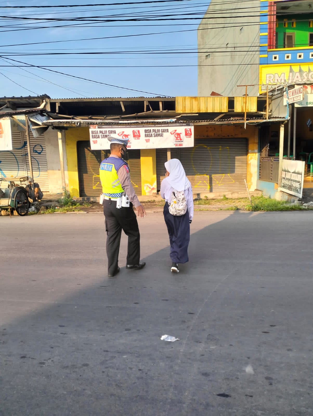 Berikan rasa aman ,Personil Lantas Polsek Kedawung Sebrangkan siswa, saat Gatur Pagi.