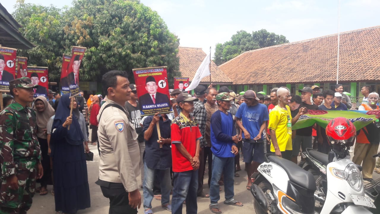 POLRES CIREBON KOTA,-Upaya menjaga situasi kamtibmas yang aman dan kondusif di wilkum Polsek Kedawung, Personil Polsek Kedawung dan Polres Ciko di pimpin Kapolsek Kedawung laksanakan pengamanan tahapan kampanye Calon Kuwu di Wilkum Polsek Kedawung.