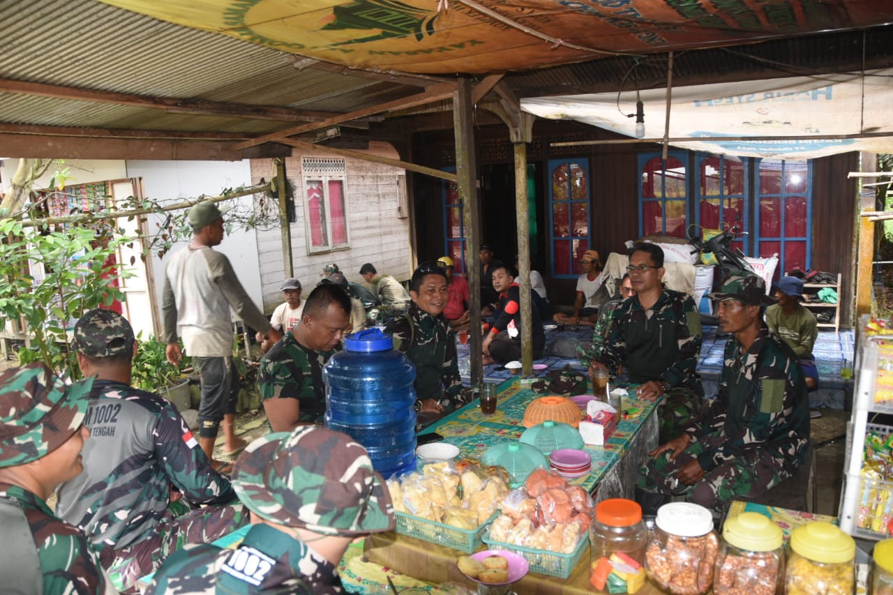 Setiap sore, selepas beristirahat dari aktivitas pembangunan, anggota Satuan Tugas (Satgas) TMMD ke-124 Kodim 1002/HST kerap singgah ke warung Hamsiah. Mereka tidak hanya sekadar menikmati kopi, tetapi juga berkomunikasi sosial dengan warga sekitar, mempererat tali silaturahmi yang telah terjalin selama pelaksanaan TMMD. Aktivitas ini terpantau pada Minggu (25/5) sore.