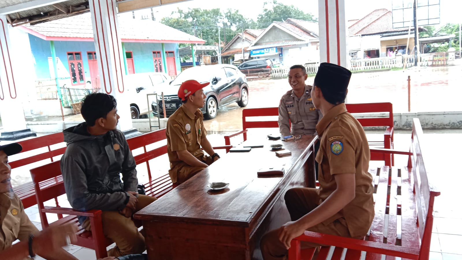 Pertemuan ini dihadiri oleh kepala desa, perangkat desa, dan tokoh pemuda. Suasana hangat terlihat saat diskusi berlangsung di ruang terbuka balai desa.