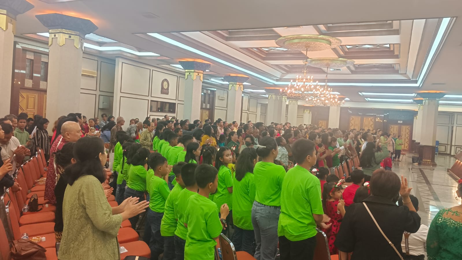 Seperti yang dilakukan Bhabinkamtibmas kelurahan kesambi Polsek kesambi polres Cirebon kota Polda Jabar Aiptu Ade Wardaya perayaan Natal di gedung Gratis Senin malam (25/12/2023).