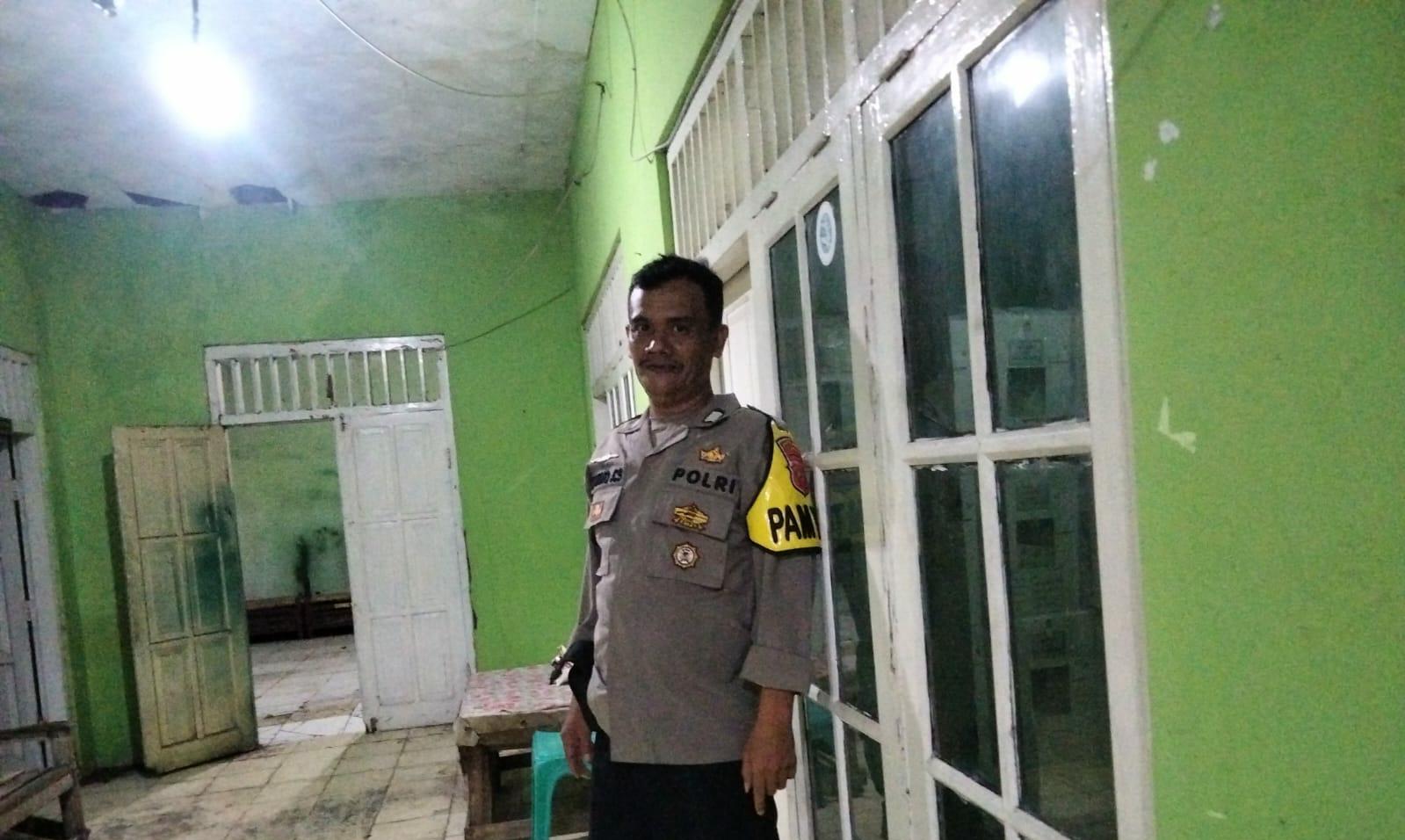 Bhabinkamtbmas Desa Suranenggala Kulon Polsek Kapetakan Polres Cirebon kota Polda Jabar Bripka Dodi monitoring distribusi Logistik Pemilu 2024 di PPS desa Suranenggala Kulon, Rabu malam (14/02/2024)