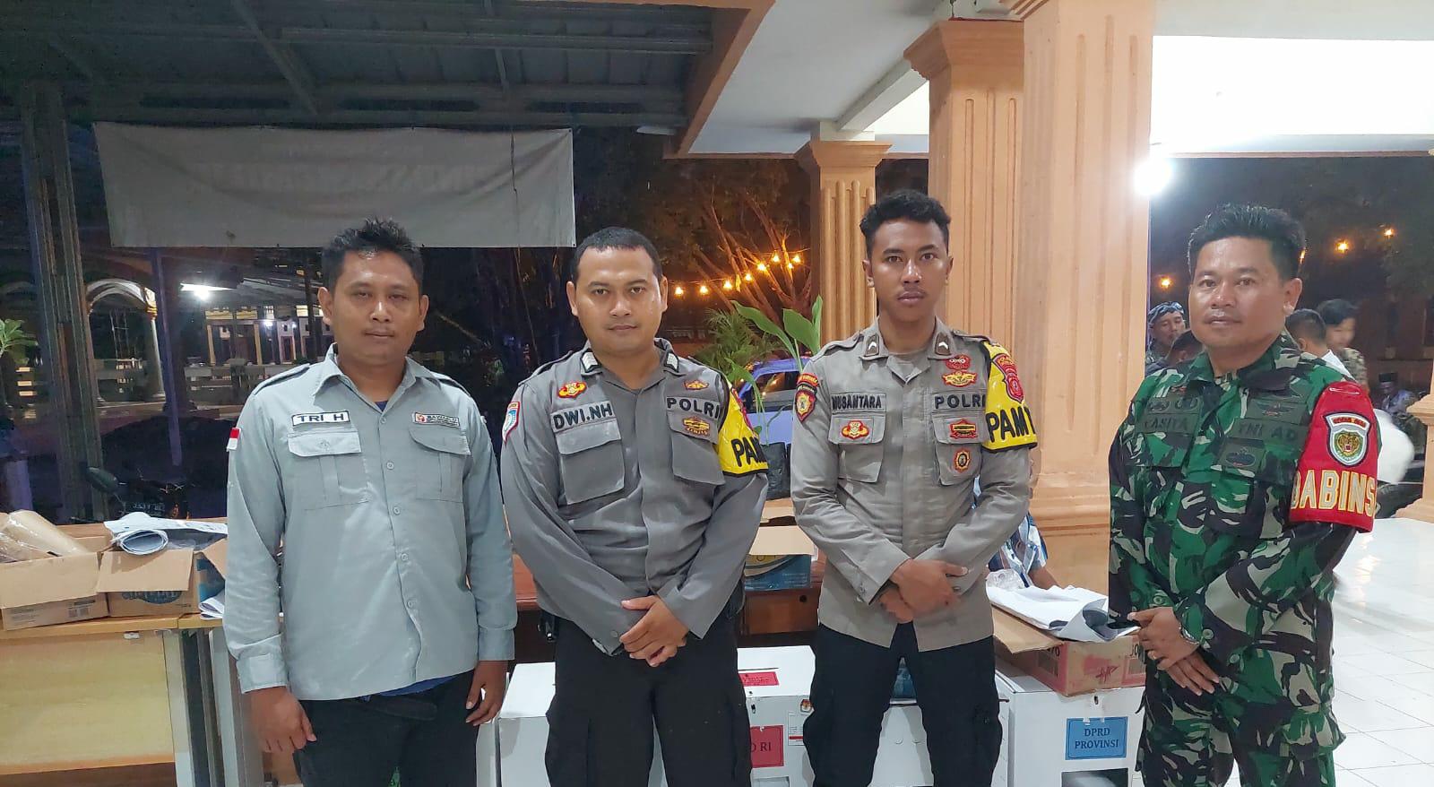 Bhabinkamtbmas Desa Suranenggala Kulon Polsek Kapetakan Polres Cirebon kota Polda Jabar Bripka Dodi monitoring pergeseran kotak suara Pemilu 2024 di PPS desa Suranenggala Kulon, Kamis dinihari (15/02/2024)