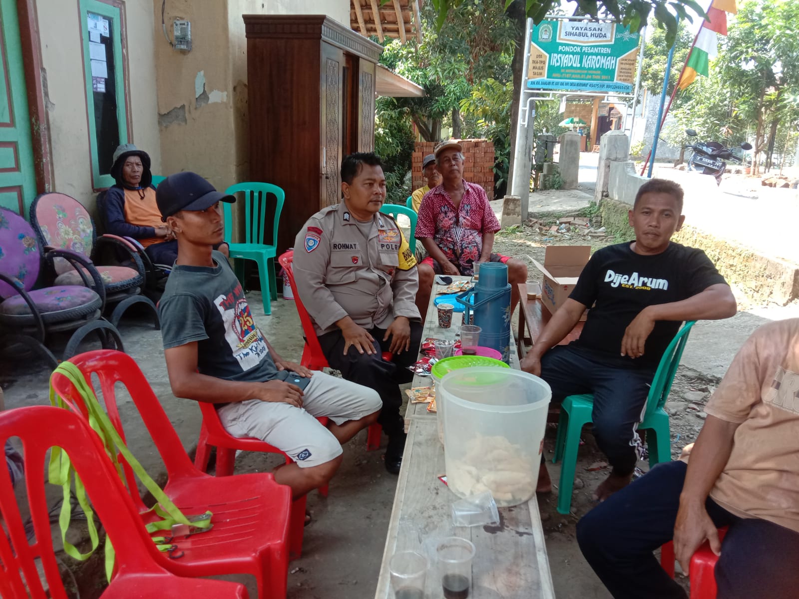 Majalengka, Bhabinkamtibmas dari Polsek Palasah, Polres Majalengka, Bripka Rohmat melakukan blusukan dan sambang ke Desa Karamat, Kecamatan Palasah, Kabupaten Majalengka dalam rangka menjalin kedekatan dengan warga setempat.Pada Kamis (20/7/2023).
