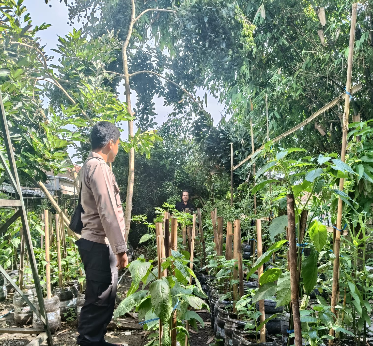 Brigadir Wandi mengecek kondisi tanaman cabai yang ditanam oleh Bapak Permana di lahan seluas beberapa meter persegi, serta memberikan arahan dan bimbingan agar hasil pertanian dapat maksimal dan memenuhi standar kualitas yang baik. Ia mengapresiasi upaya Bapak Permana yang telah mendukung program ketahanan pangan dengan memanfaatkan lahan pekarangan untuk bercocok tanam cabai, yang dapat mendukung kebutuhan pangan keluarga dan masyarakat.