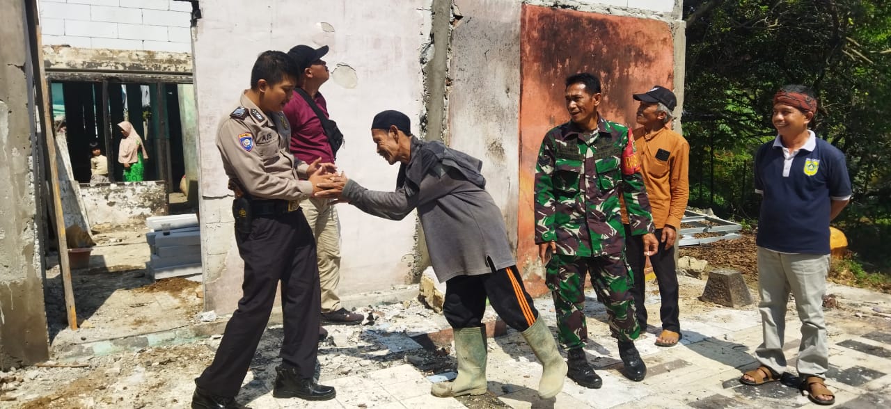 Bhabinkamtibmas Cikeas Polsek Sukaraja Polres Bogor Bersama Babinsa dan Ketua RT /RW Setempat Berikan Bantuan Kepada Keluarga Korban Kebakaran Rumah.