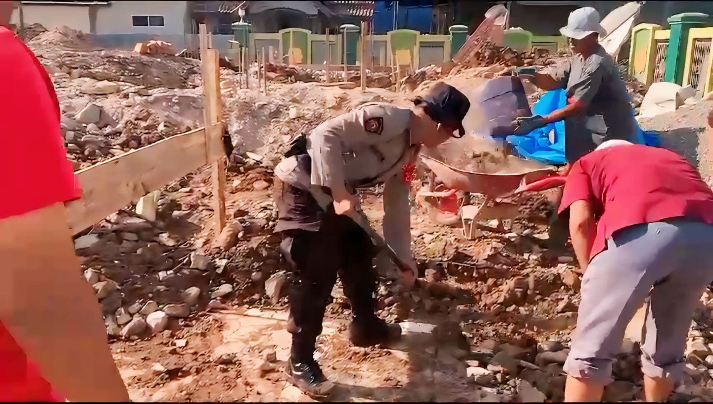Majalengka,- Bhabinkamtibmas Polsek Cikijing, Aiptu Usin, menunjukkan kepedulian sosialnya dengan terjun langsung membantu proses pembangunan Masjid Nurul Huda di Blok Sukaraos, Desa Sukamukti, Kecamatan Cikijing, Kabupaten Majalengka, pada Rabu (04/09/2024).