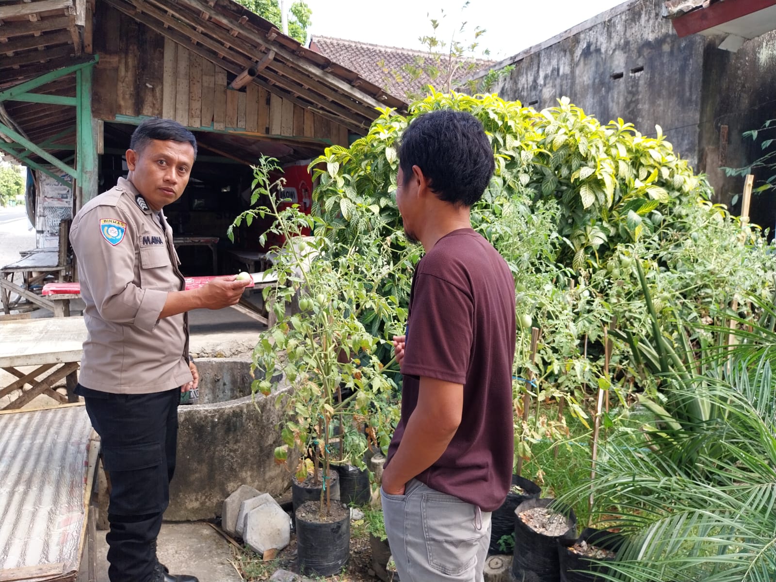 Kegiatan tersebut dilakukan dengan meninjau langsung pekarangan milik warga, salah satunya kebun sayur tomat milik Rudi (36)