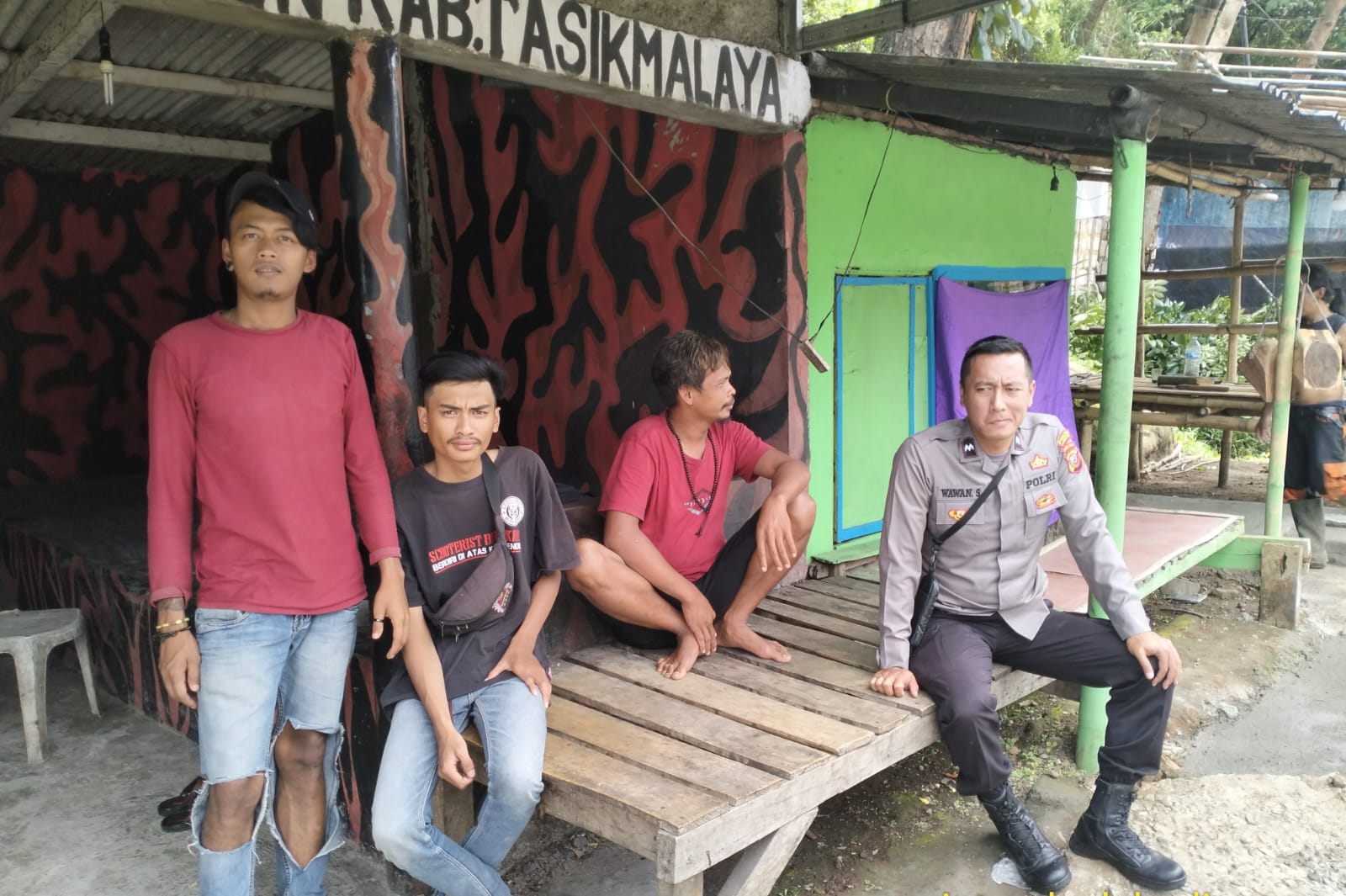 -Seperti halnya yang dilakukan Bhabinkamtibmas Ds.cibahayu menyambangi warga yang sedang duduk-duduk santai dan ngobrol , pada kesempatan yang baik tersebut Babin menyampaikan pesan