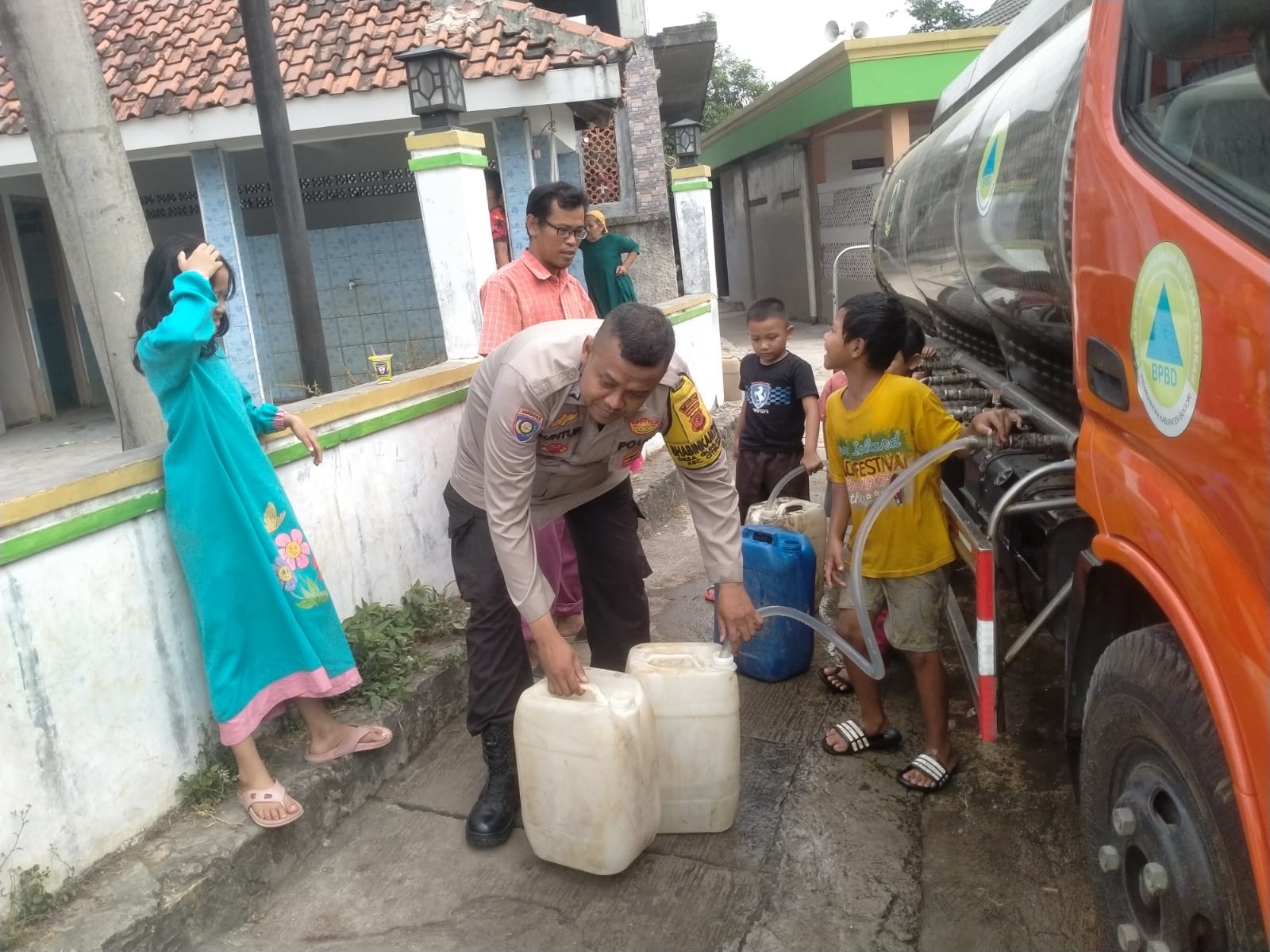 Polres Bogor, Bhabinkamtibmas Desa Gunung Sari Polsek Citeureup Polres Bogor Polda Jabar Bripka Guntur Pramono telah melaksanakan tugas Pelayanan Publik melalui Sinergitas TNI Polri serta Penyaluran Air Bersih untuk warga bersama Forkopimdes , pada hari Minggu (20/08/2023).