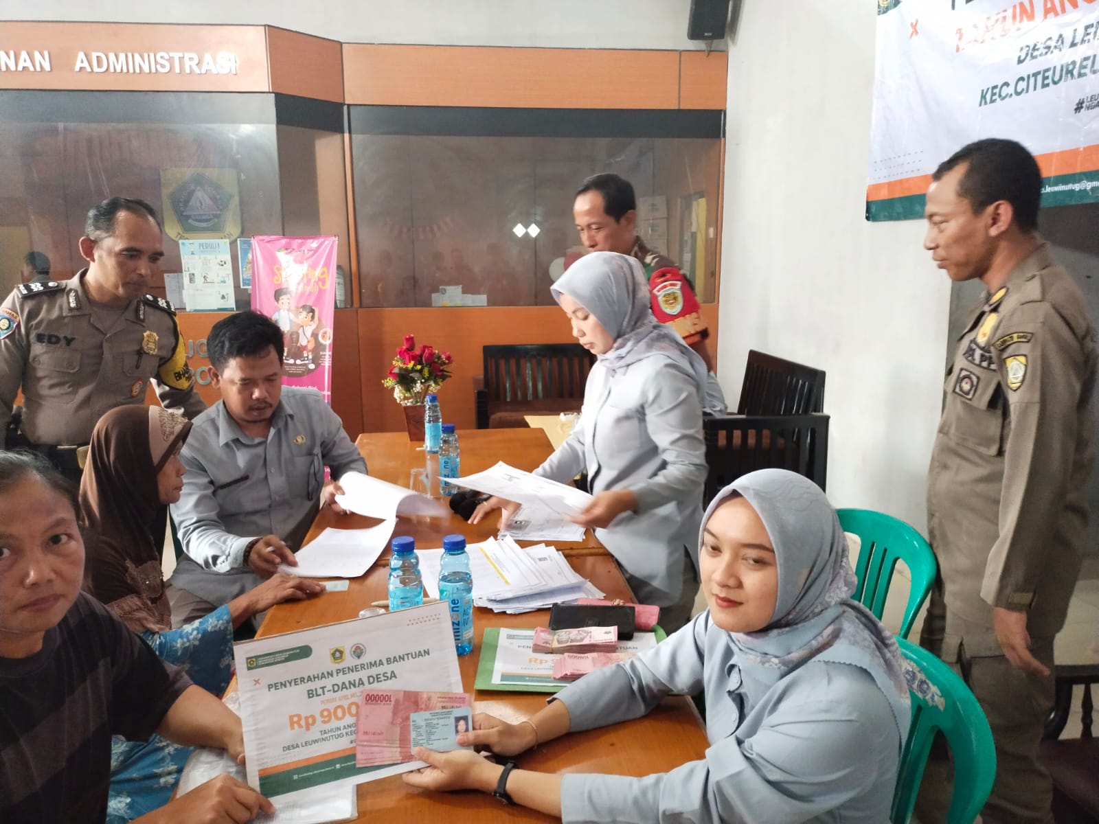 Citeureup – Polres Bogor, Bhabinkamtibmas Desa Leuwinutug Polsek Citeureup Polres Bogor Polda Jabar Aiptu Edi Suprapto telah melaksanakan tugas Pelayanan Publik melalui Pelayanan Publik bagi warga yang menerima bantuan BLT dan mengawasi pelaksanaan agar tidak terjadi hal yang tidak diinginkan bersama Forkopimdes di Aula Pemdes Leuwinutug berakhir dengan tertib dan lancar, kemarin (30/08/2023).