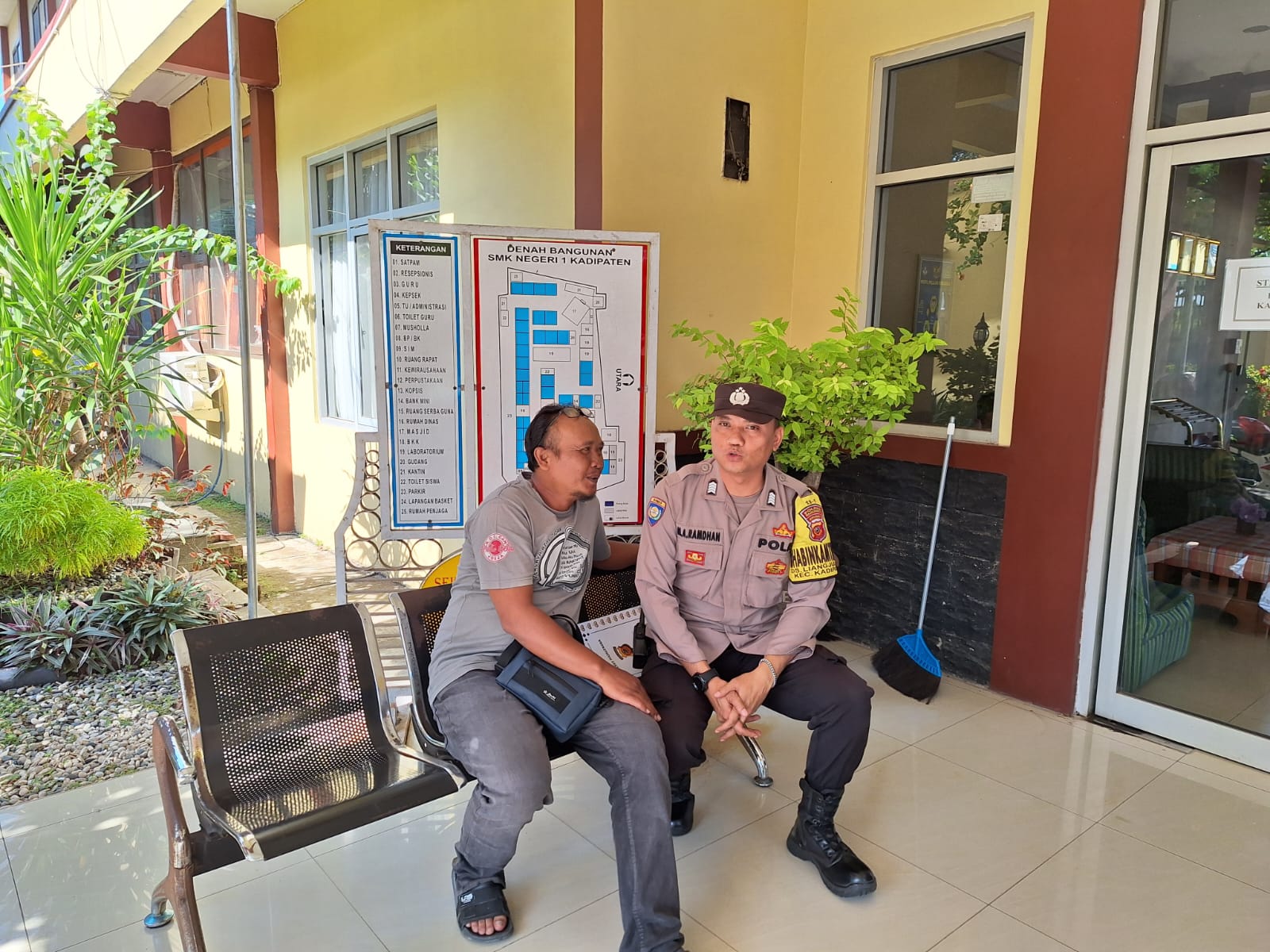 Majalengka – Dalam rangka meningkatkan keamanan dan ketertiban di lingkungan sekolah, Bhabinkamtibmas Desa Liangjulang, Bripka Mochamad Atin Ramdhan, S.H., yang merupakan personel Polsek Kadipaten Polres Majalengka, melakukan sambang ke SMKN 1 Kadipaten. Kegiatan ini bertujuan untuk memberikan himbauan Kamtibmas kepada satpam sekolah agar lebih waspada dan turut serta menjaga keamanan di lingkungan sekolah. Kehadiran Bripka Mochamad Atin Ramdhan disambut positif oleh pihak sekolah yang merasa lebih terlindungi dengan adanya perhatian dari pihak kepolisian. Jumat (19/07/2024).