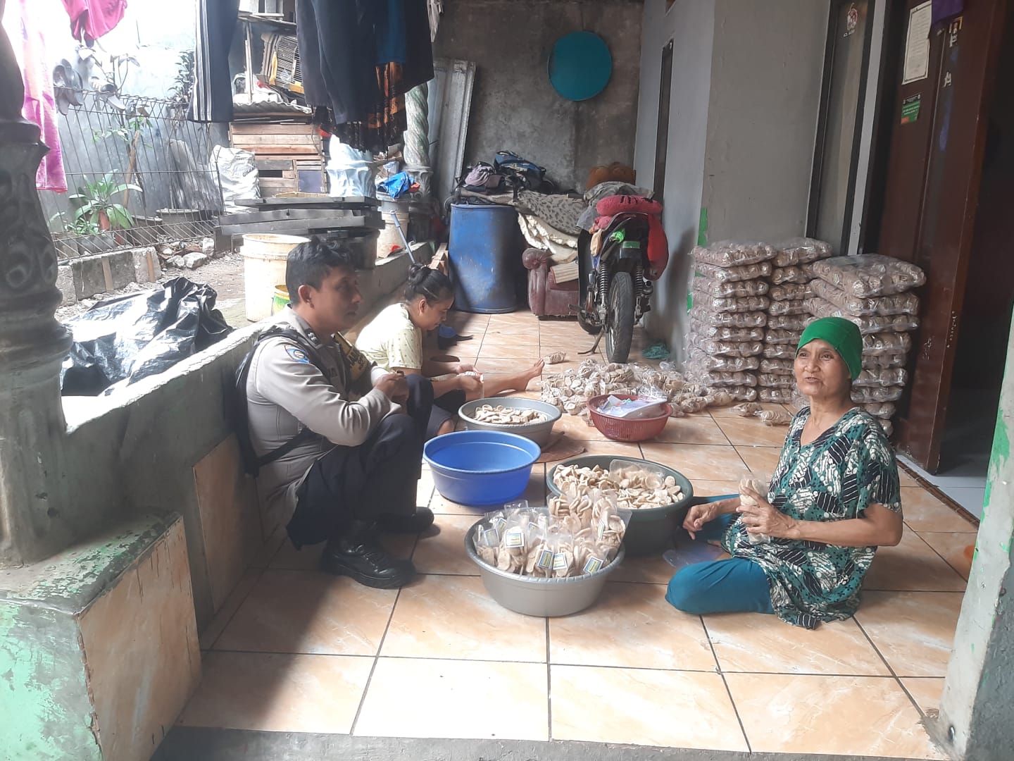 Polres Bogor, Bhabinkamtibmas Desa Sanja Polsek Citeureup Polres Bogor Polda Jabar Aiptu Daryanto telah melaksanakan tugas Pelayanan Publik melalui Sambang Warga yang sedang merapihkan dagangannya untuk dijual dengan Humanis memberikan Sosialisasi TPPO, pada hari Senin (14/08/2023).