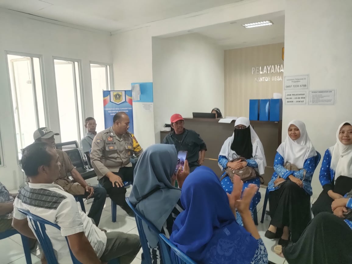 Dalam kesempatan kegiatan musyawarah desa, Bhabinkamtibmas melaksanakan Dialog dengan warga masyarakat sekaligus menyampaikan pesan kamtibmas agar meningkatkan kewaspadaan terhadap para pelaku kejahatan yang memanfaatkan situasi yang apalagi tidak adanya giat siskamling,antispasi di wilayah curugbitung dengan adanya tindak pidana TPPO(tindak pidana perdagangan orang/manusia) karena belum lama ini polda jabar dan polres bogor berhasil melakukan pengungkapan di beberapa wilayah hukum polda jabar dan polres bogor terkait marak nya bisnis TPPO(tindak pidana perdagangan orang/manusia) yang semua modus operandi nya adalah menyasar masyarakat kalangan ekonomi rendah/rentan dengan di iming imingi kerja keluar negri dengan gaji/penghasilan tinggi dan beberapa salary fasilitas sebelum pemberangkatan lain nya kepada pihak keluarga calon korban sehingga mempercayai biro jasa tenaga kerja luar negeri tersebut.